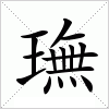 - 《唐韻》武扶切《集韻》《韻會》微夫切,��音無。《說文》三采玉也。《徐曰》三采,朱蒼白也。《博雅》玉名。《周禮·夏官·弁師諸侯之繅斿九就瑉玉三采註》瑉作璑。璑,惡玉名。《疏》以其三采,又非璠璵,故曰惡玉名。