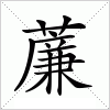 - 《唐韻》力鹽切,音廉。《爾雅·釋草》蒹,薕。《註》似萑而細,高數尺,江東呼爲薕。又《廣志》三薕似箭,羽長三四寸,皮肥細,緗色,以蜜藏之,味甘酸可食。出交州,五月中熟。 又《類篇》薑也。