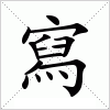 - 《唐韻》悉也切《集韻》《韻會》洗野切《正韻》先野切,��音瀉。《說文》置物也。《廣韻》除也,程也。《增韻》傾也,盡也,輸也。《詩·邶風》駕言出遊,以寫我憂。《註》寫,除也。《小雅》我心寫兮。《註》謂我心輸寫,而無留恨也。 又《禮·曲禮》御食於君,君賜餘器之漑者不寫,其餘皆寫。《註》謂萑竹所織,不可洗滌,則傳寫於他器而食之,不欲口澤之凟也。 又洩也。《周禮·地官》稻人掌稼下地,以澮寫水。 又膽鈔也。《古諺》書三寫,魚成魯,帝成虒。 又摹畫也。《史記·秦始皇紀》秦每破諸侯,寫放其宮室,作之咸陽。《註》放,效也。 又鑄像曰寫。《越語》王令工以良金寫范蠡之狀,而朝禮之。《註》謂以善金鑄其形也。 又《集韻》四夜切,音卸。與卸通。《石鼓文》宮車其寫,四馬其寫。《註》舍車解馬也。 又叶舒呂切,音暑。《詩·小雅》旣見君子,我心寫兮。叶上湑下處。 又叶蘇果切,音瑣。《謝惠連詩》有客被褐前,投心自詢寫。臧否固消滅,誰知窮薪火。